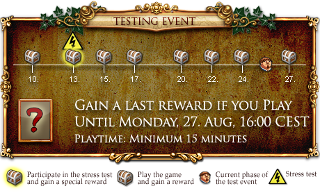 today we ring in the last round of our test event. So hurry up, get ready for the finish and play this weekend from Friday to Monday 16:00 (CEST), to grab yourself the last reward.